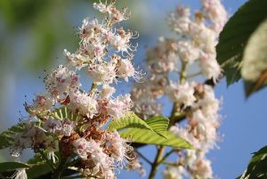 Viele denken bei der Kastanie an den Herbst und die Weihnachtsmärkte, doch im Mai erfreut uns die Blüte auch in luftiger Höhe mit einem Farbenspiel zwischen all dem Grün.